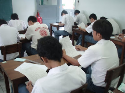 Dari jauh nampak Bu Rina dan Frater Atmo lagi ngawasin MANUKERS yang lagi ujian. Tapi dari hasil poto ini juga ndak isa ditipu kalo mereka ternyata lagi bercanda (bukti otentik udah ada nih...).